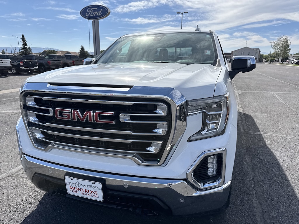 View this used 2021 GMC Sierra 1500 Truck Crew Cab SLT for sale at Montrose Nissan, serving the Delta, Cedaredge, Ridgway, and Gunnison area with used GMC Sierra 1500 sales.